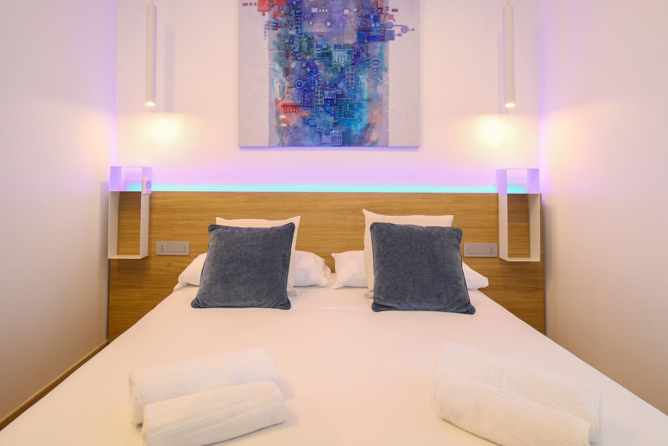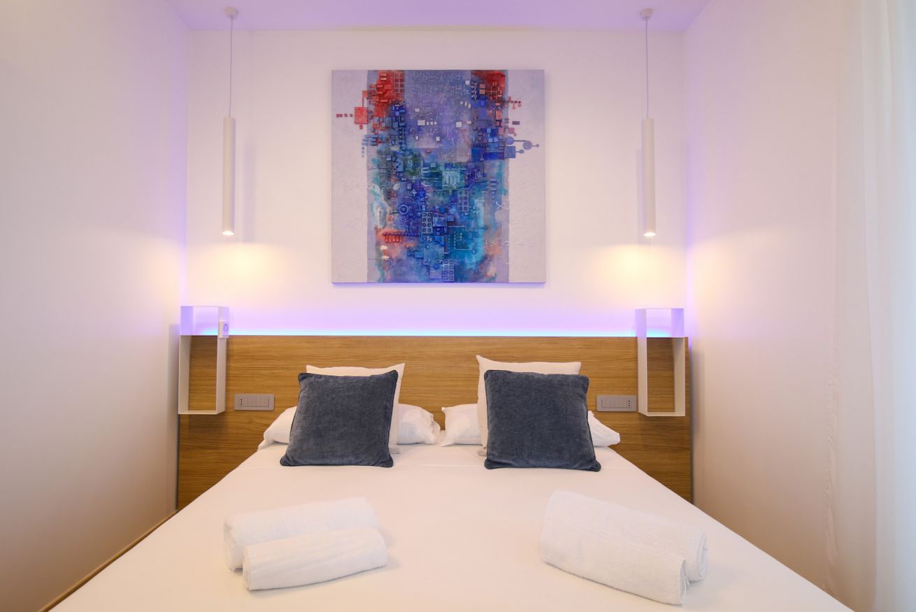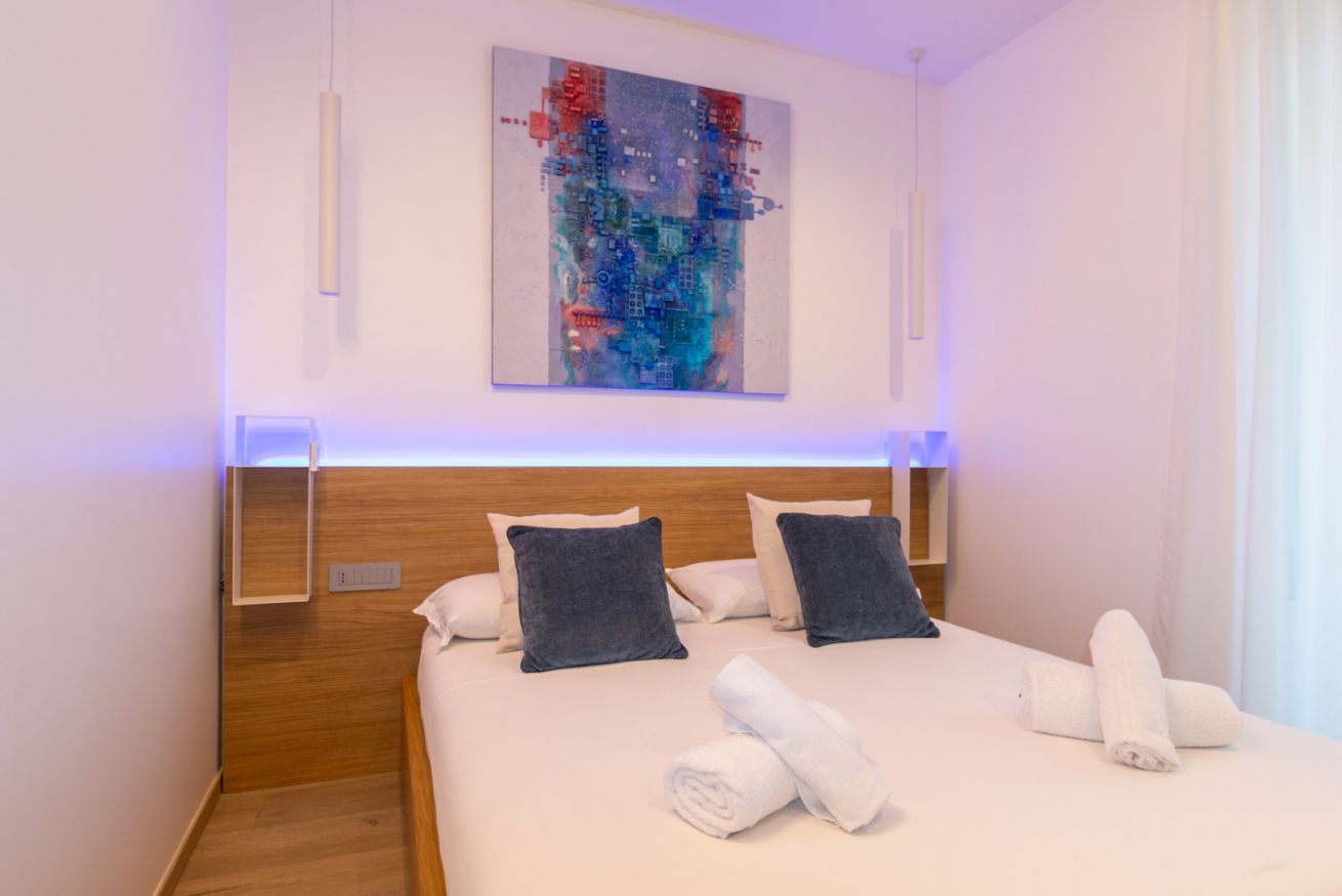 Le camere matrimoniali misurano intorno a 20mq + bagni e sono dotate di un letto matrimoniale.